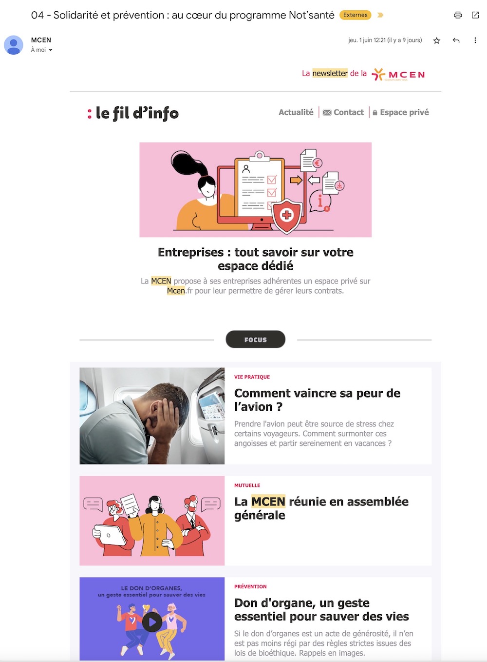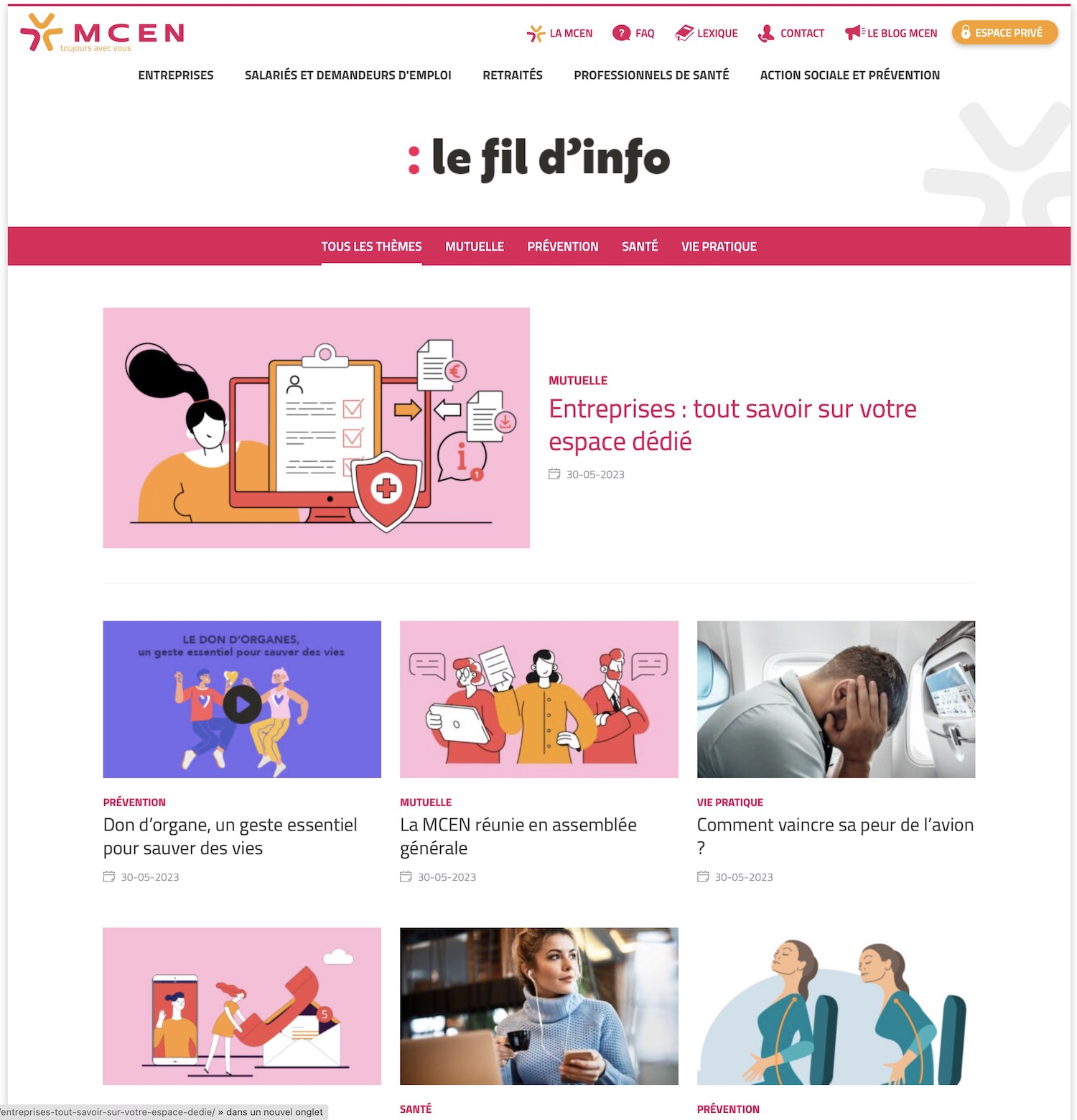 MCEN la mutuelle des notaires a souhaité mettre en place un nouveau blog afin d’améliorer la communication et relation adhérent. Ce nouveau blog s’inscrivait également dans la perspective du lancement de la nouvelle newsletter MCEN dont l’intégration technique a également été faite par Eficiens