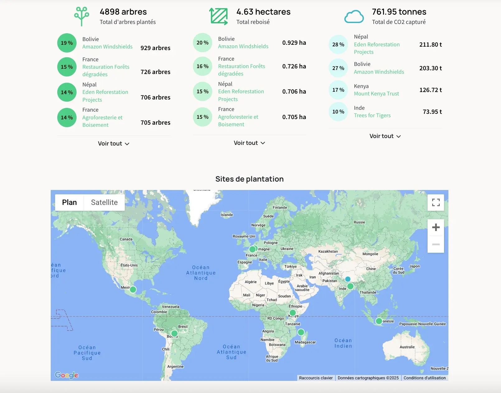 En 2025, 2 100 arbres ont ainsi été plantés à travers le monde grâce à nos versements.