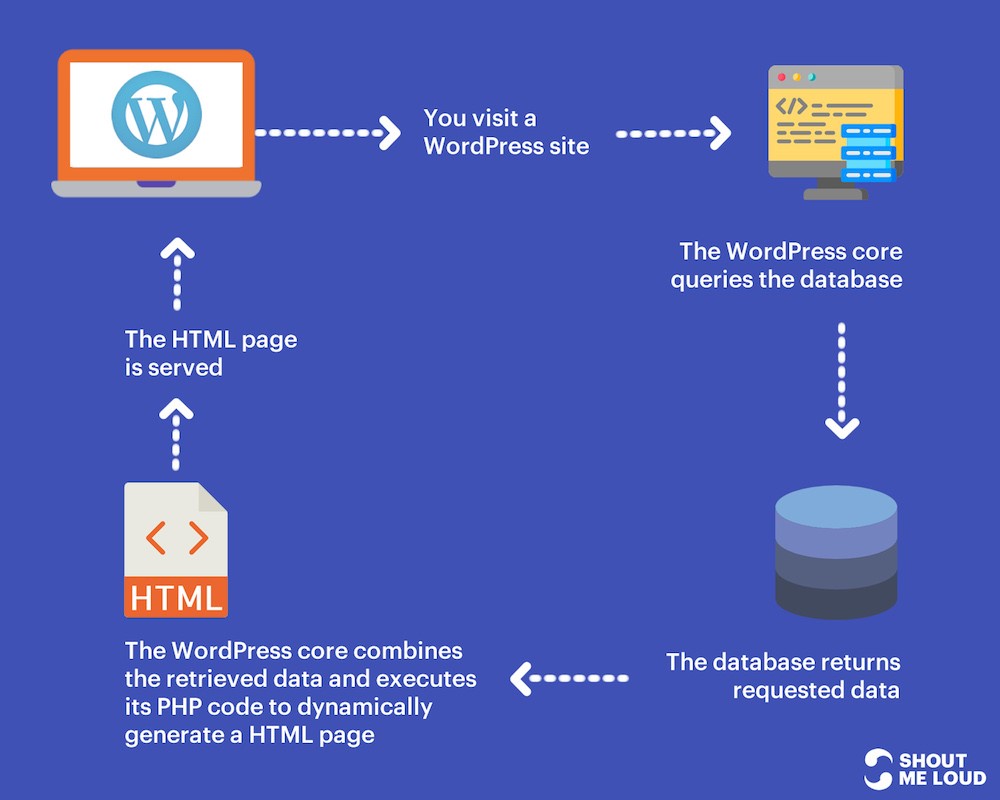 Source : https://www.shoutmeloud.com/wp-content/uploads/2019/02/How-Caching-Works-in-WordPress.jpg