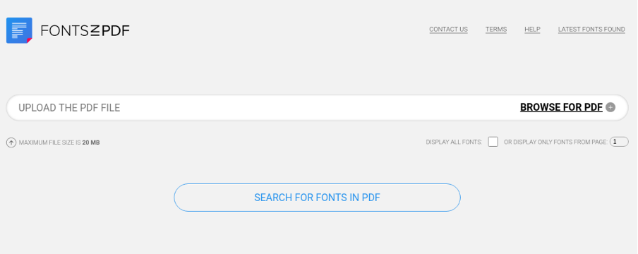 - FontsinPDF : il s’agit d’un site web permettant de connaître la police d’écriture d’un document PDF. À cette fin, rendez-vous sur FontsinPDF et téléchargez le document qui vous intéresse. Cliquez ensuite sur « search for fonts in PDF ». Le style d’écriture que vous cherchez s’affiche dans une autre page.