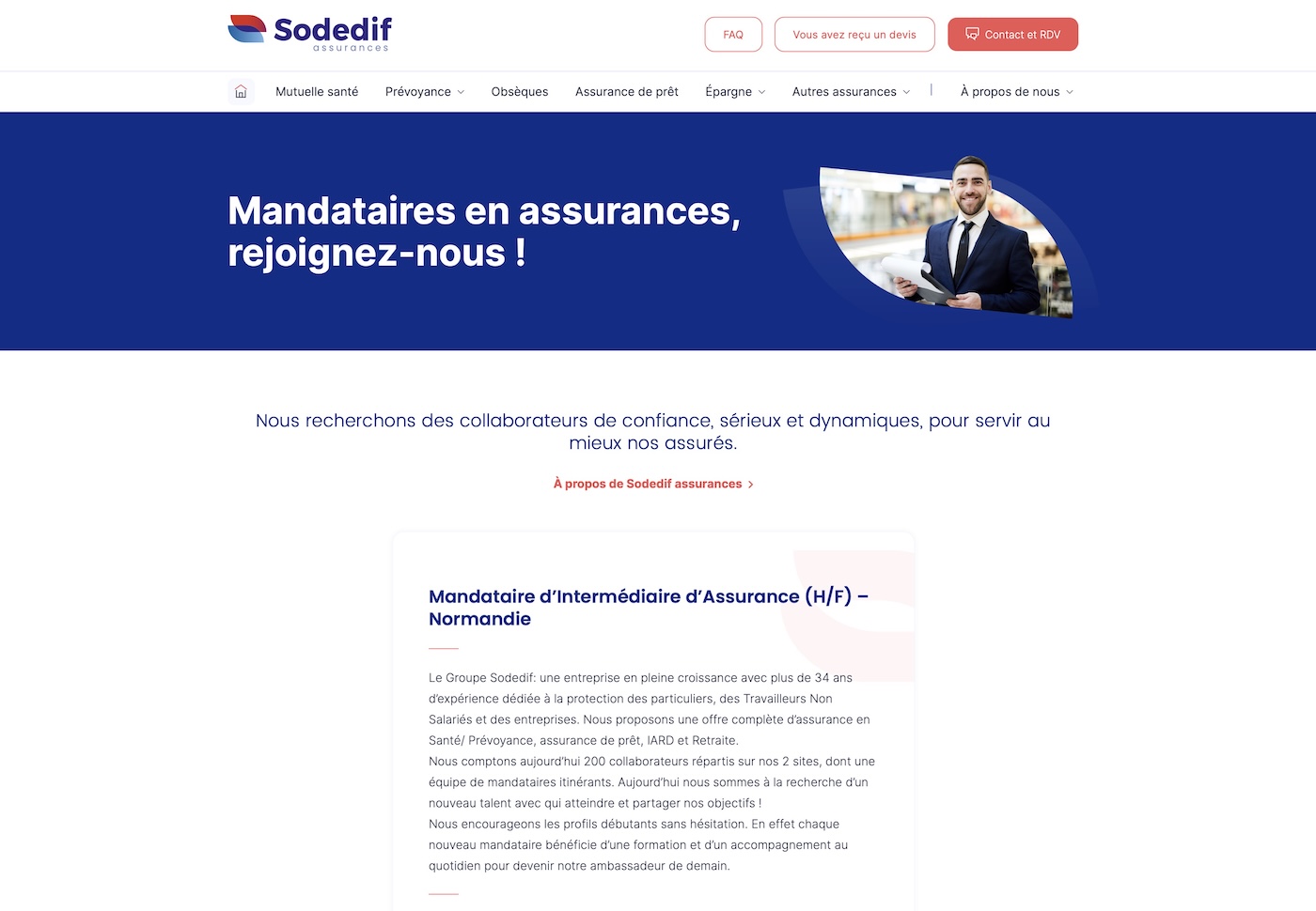 Le site doit faciliter la vie des clients existants avec un espace client sécurisé, des outils de déclaration et de suivi des sinistres en ligne, un support client multicanal et une page contact claire.