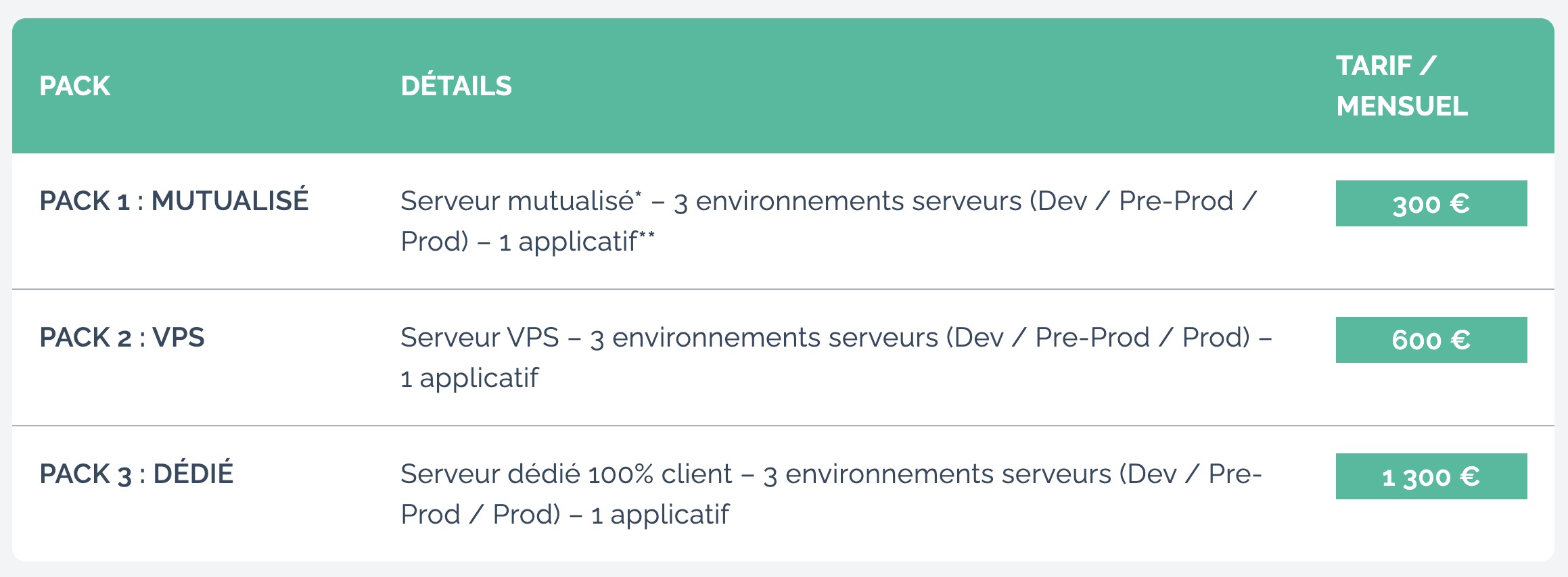 - Serveur dédié : à partir de 80€/mois jusqu’à plusieurs centaines d’euros pour des configurations hautes performances